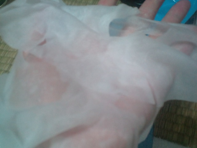 意外としっかりとしたマスクなので、美容液をたっぷり吸いこんでいて、顔にもフィットしますよ。